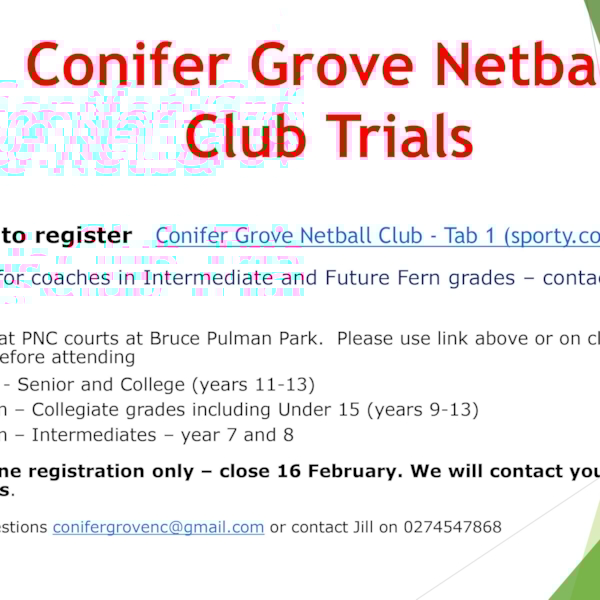 Places will be allocated on a first come, first served basis. To register please follow this link -https://www.sporty.co.nz/viewform/272895