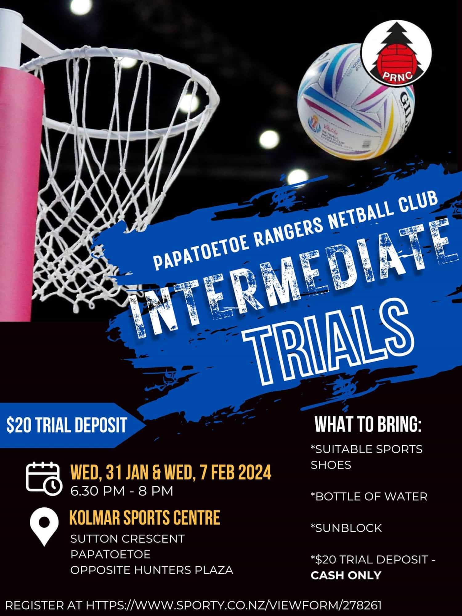 Wednesday 31st January and Wednesday 7th February 2024 at Kolmar Sports Centre, Sutton Cres, Papatoetoe (opposite Hunters Plaza), 6.30pm - 8pm