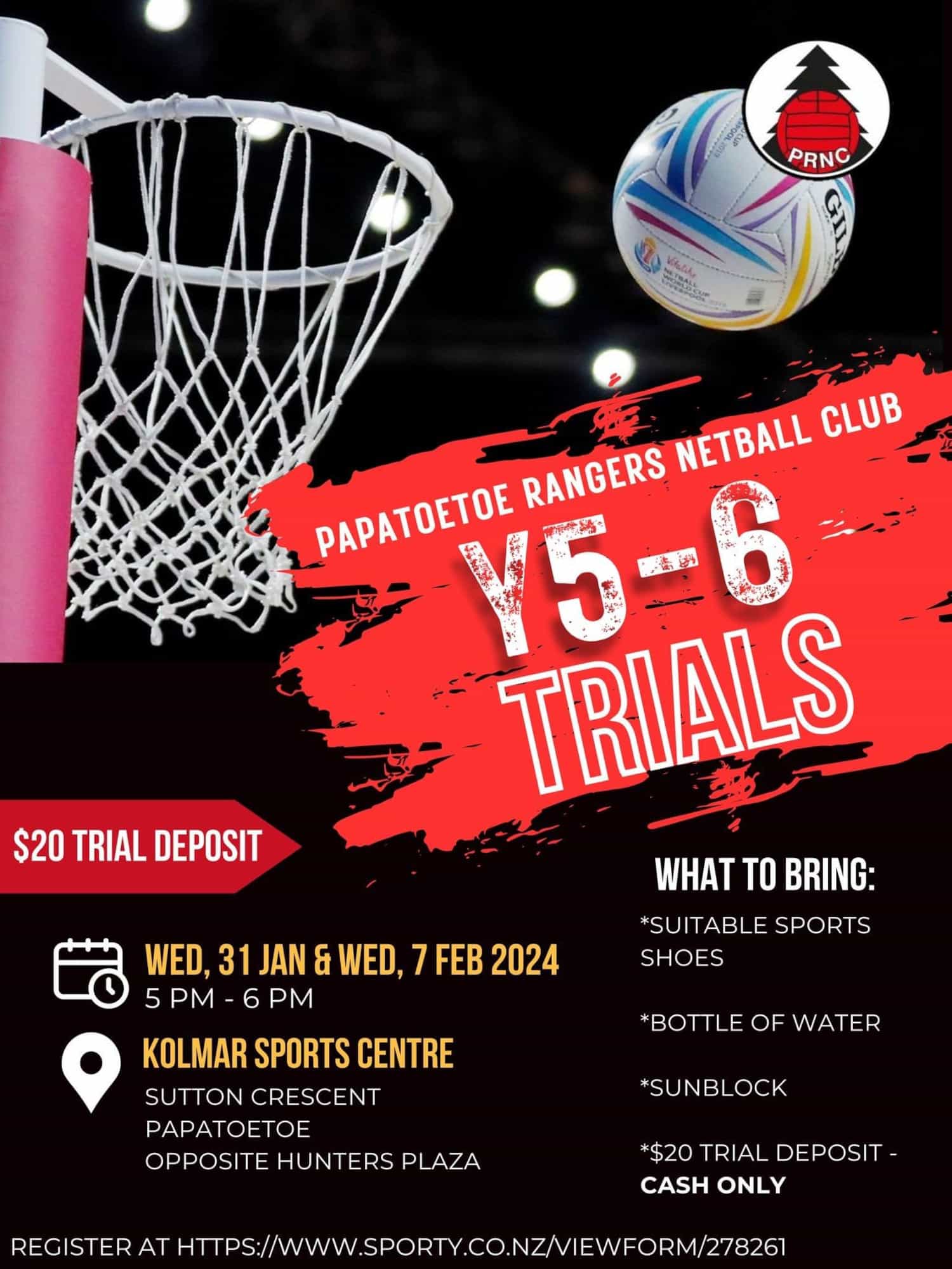Wednesday 31st January and Wednesday 7th February 2024 at kolmar Sports Centre, Kolmar Sports Centre, Sutton Cres, Papatoetoe (opposite Hunters Plaza), 5pm to 6pm.